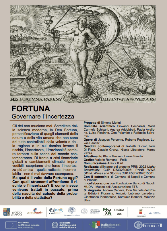 Giovedì 11 settembre, alle 11, a Palazzo Ricca, nella sede della Fondazione Banco di Napoli (Via dei Tribunali 213, Napoli), sarà inaugurata l’esposizione ‘Fortuna. Governare l’incertezza’ a cura del Dipartimento di Scienze Economiche e Statistiche dell’Università Federico II, dell’Istituto di Storia dell’Europa Mediterranea del CNR e della Fondazione Banco Napoli. Il percorso espositivo, evidenzia una nota, “prende avvio da un episodio reale: il naufragio del capitano Michele Grimaldi di Procida nel 1859, tratto da un testimoniale marittimo e da un ex-voto conservato a Procida”. Da qui si dipana una narrazione che attraversa i diversi modi con cui le società hanno tentato di governare l’incertezza: dalle pratiche divinatorie e religiose alle strategie dei navigatori, fino ai calcoli degli assicuratori e alla nascita della probabilità statistica. Il visitatore si trova immerso nell’esperienza di una tempesta di mare attraverso l’installazione sonora dell’artista e compositore Roberto Pugliese e le proiezioni di Lukas Sander.